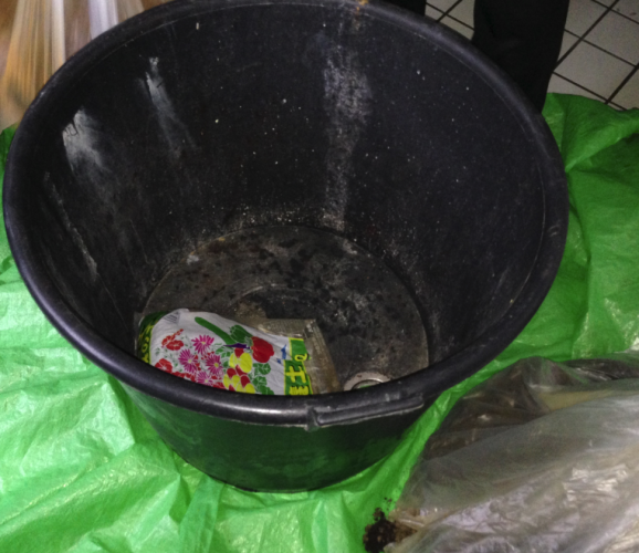 巨大なポリバケツ。100リットルくらいは普通にはいるかも。