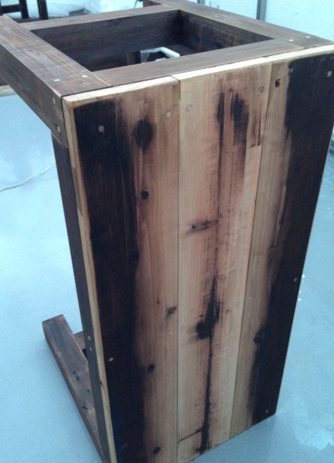 ここで手を抜くとビールグラスが板の境でグラグラしますからね。しっかりと処理します。