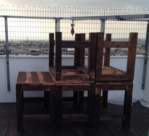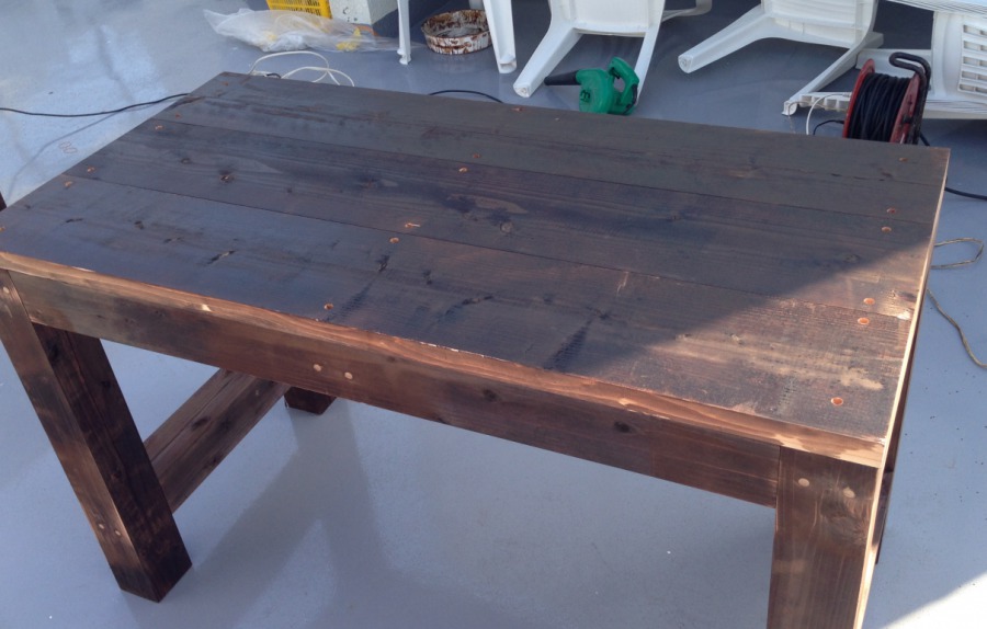 今日は風も強くて壁を塗ることもできなかったので一日テーブルの制作をしていました。組み立ては終わりましたが、細かい後処理があります。地味に大変ですよ~。