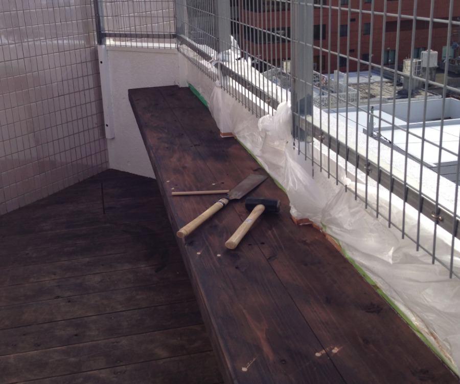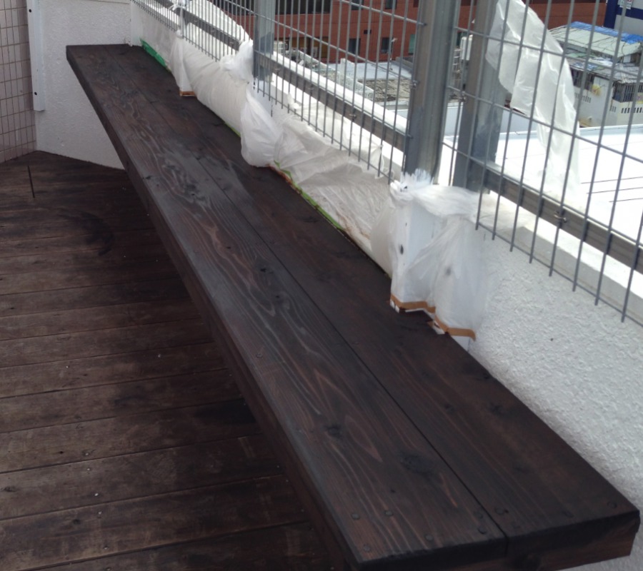 ステインをもう一度塗ります。抗すことで塗りむらがなくなって綺麗に仕上がります。