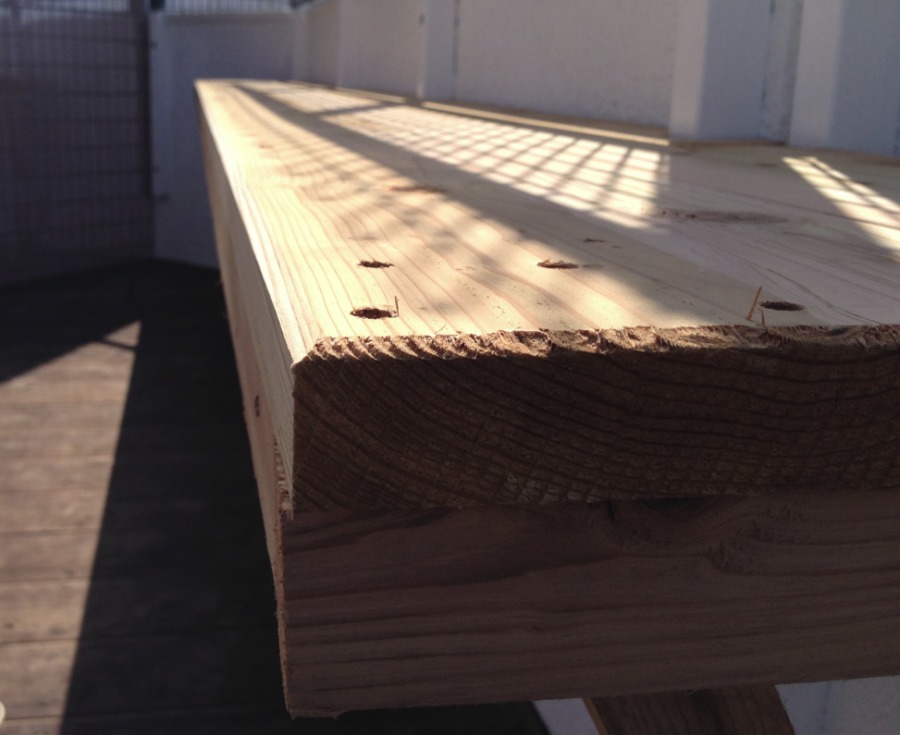 バーカウンター製作の続きです。縁をカンナがけして丸みを持たせています。