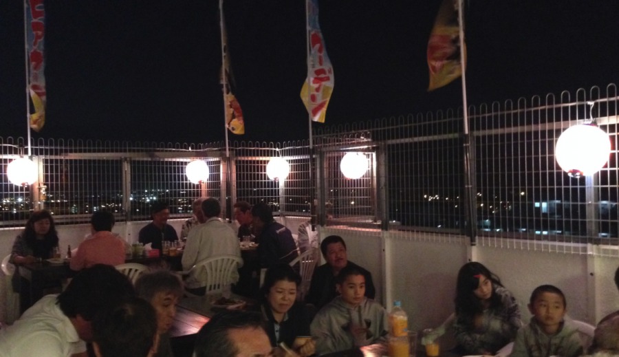 夜の中の町ビアガーデンはこんな雰囲気です。