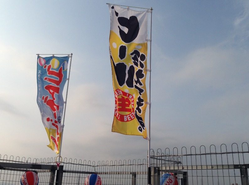 ビアガーデンの旗が気持ち良さそうに揺れています。今日は風も穏やかでとても良い天気です。