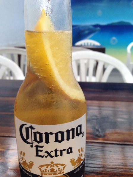 さっぱりとした味がおいしい「コロナビール」ですね。レモンと一緒に飲むとさわやかな後味と相まって良い感じです。