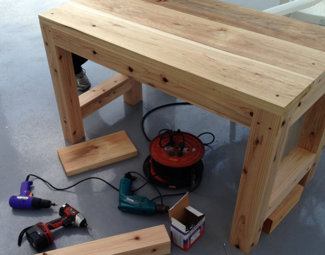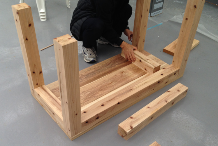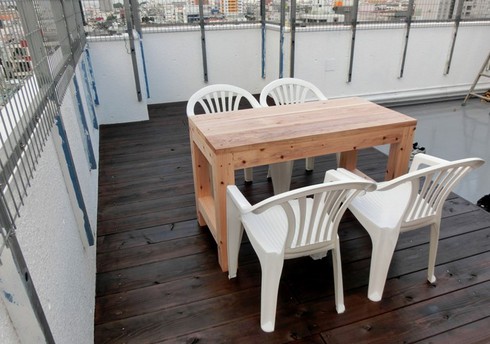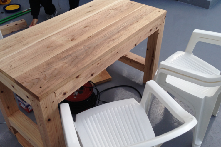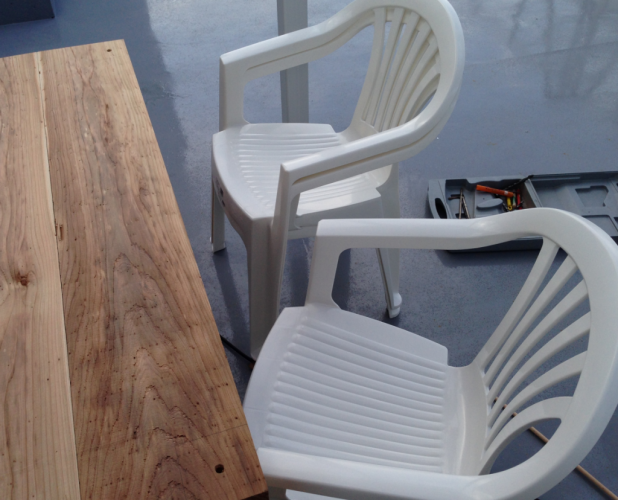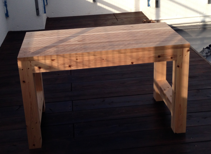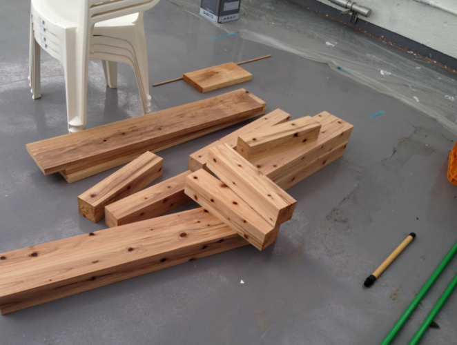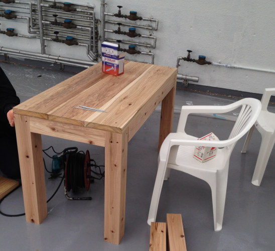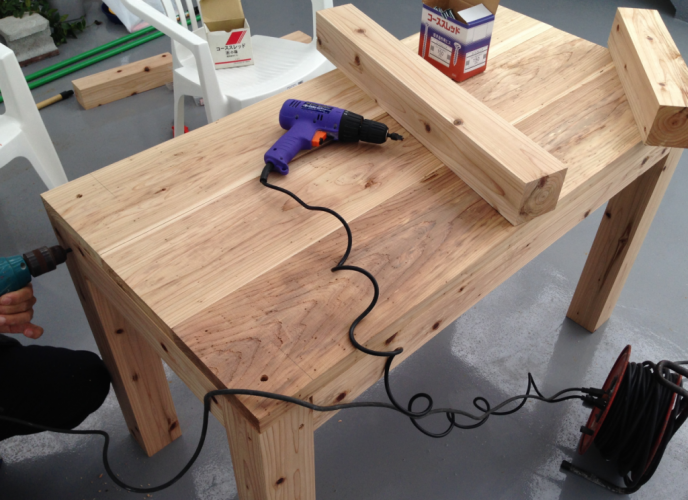 ビアガーデンに一番必要な物と言えば、テーブルとイスですね。木材やで加工して貰ったこれらを使って自作していきます!